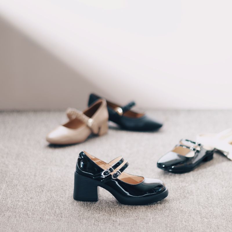 本季瑪莉珍鞋系列則融合個性龐克與浪漫芭蕾元素,碰撞出全新風格,不規則剪裁鞋面搭配細膩皮革光澤,再以時尚鞋扣或繫帶點綴,展現設計細節巧思。無論搭配甜褲風皮褲、學院風格紋裙或俐落西裝褲,都能自信展現個人風格,讓經典復古鞋型在今年秋冬展現更多層次魅力。