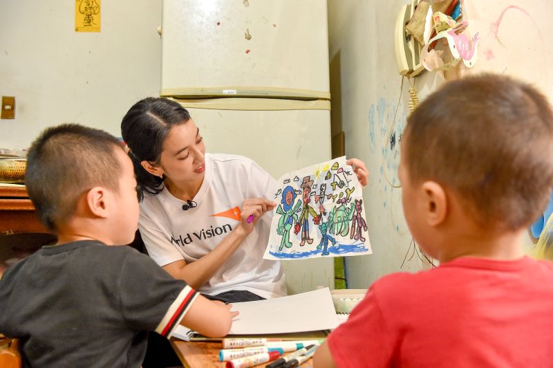 陳庭妮分享:「你很難想像,這個地方明明只與城市隔著一座橋,但生活條件卻是完全不同的世界。」一家人每逢颱風就要緊急撤離,風雨後再重新整理房屋結構,「對一個家庭來說,那種不確定感真的好辛苦、也難以想像。」但令她印象最深刻的,是孩子的笑聲與純真眼神,她心疼表示:「你以為他很辛苦,可是他又笑得那麼真誠、那麼樂觀。孩子的懂事,有時候是因為現實逼著他們長大,這反而最刺痛人心。」在展望會的幫助下,孩子的生活越來越好,並接受語言治療,能敞開心房主動分享學校生活、介紹心愛的畫作,那種逆境中懷抱希望的模樣,讓她久久無法忘懷。