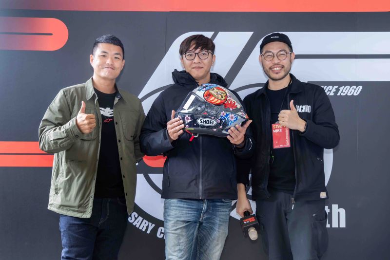 大橋新星負責人Mike謝岷澔宣布旗下代理品牌SHOEI、Cardo、Alpinestars皆帶來最新產品與功能亮相,除了讓車迷能搶先體驗頂級裝備外,現場更安排公益競標義賣環節,最大獎竟是MotoGP世界冠軍Marc Márquez的親筆簽名安全帽,讓現場車迷超激動,而最後近10萬元的義賣所得更全數捐出給台灣騎士精神發展運動協會(TSR),作為支持本土年輕車手與賽事發展的重要資源,讓歡慶週年的喜悅,也能轉化為對台灣二輪運動的實質支持。