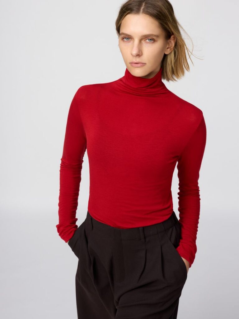 精選紅色系推薦單品,UNIQLO:C HEATTECH喀什米爾混紡高領T恤輕薄、親膚又保暖,無論單穿、內搭都柔軟舒適。JW Anderson聯名柔滑棉POLO針織衫以珊瑚紅色搭配短版廓型剪裁與俐落POLO領設計,輕鬆穿出時尚新春LOOK。
