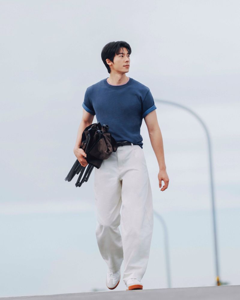 在城市中天際線映襯下,許光漢身著UNIQLO and JW ANDERSON 聯名「雙色 T 恤」,搭配「UNIQLO :C 繭型褲」,以今夏流行的疊穿趨勢與撞色技巧,演繹清新俐落的夏日風格。上身合身,下身立體的輪廓比例,讓看似簡約單品展現不經意的時尚張力。再以休閒鞋與編織皮帶收束,讓整體造型更具新鮮感,展示大師設計單品細節打造出嶄新穿搭風貌!