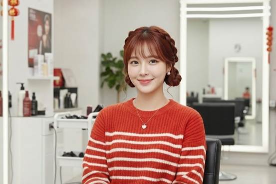 女孩們的開運首推款,絕對是自帶無敵俏皮感的「丸子頭」!打破了傳統包頭的沉重感,將兩側髮絲細緻編髮並於耳下或後腦勺盤起,刻意保留些許靈動的碎髮,營造出隨性而不失精緻的視覺張力。這不僅是Y2K風格中最具代表性的俏皮元素,在面相學上,乾淨的臉部輪廓,也象徵著迎接光明、廣納八方之財。搭配近期爆紅的「水光嘟嘟唇」與大面積的「微醺腮紅」,使整體的「好運丸子頭」更顯朝氣蓬勃,在開春之際就能以清爽亮麗的姿態,迎來整年的順遂與好人緣。